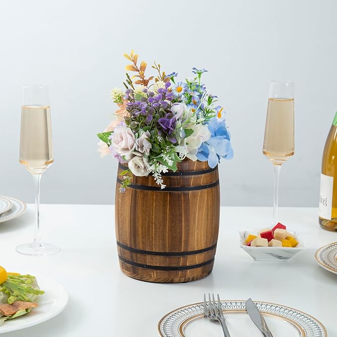 MyGift Wine Barrel Design Kitchen Utensil Crock, Vintage Rustic Burnt Wood Cooking Tool Holder