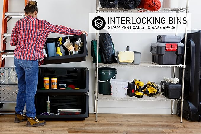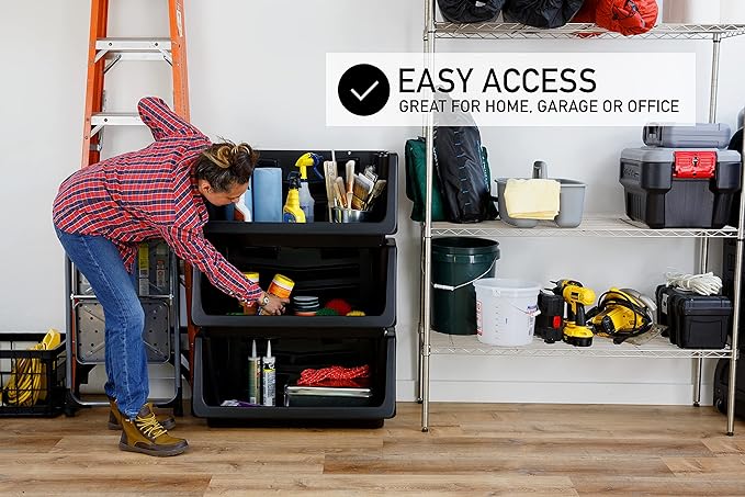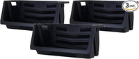 Mighty Tuff Heavy Duty Nesting Stack Bins, Pack of 3, Extra-Large Handles, Wide Front Opening, Interlocking, Stack Vertically, Holds Up To 100 Pounds, Black