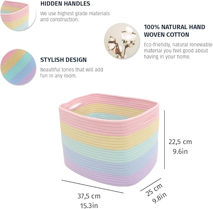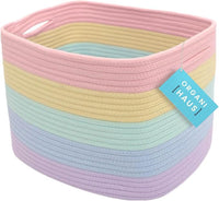OrganiHaus Rope Rainbow Storage Baskets for Shelves | Rainbow Baskets for Pastel Classroom Decor | Baby Basket for Pastel Room Decor | Pastel Rainbow Storage Bins Colorful Baskets for Baby Room