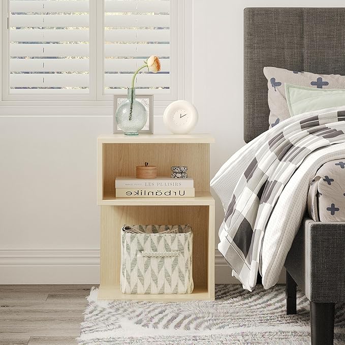 Tokyo S Minimalist 3 Tier End Table - Minimalist 3-Tier Wood Nightstand for Small Spaces with Open Storage - Japanese-Inspired Bedside Table for Bedroom (Natural)