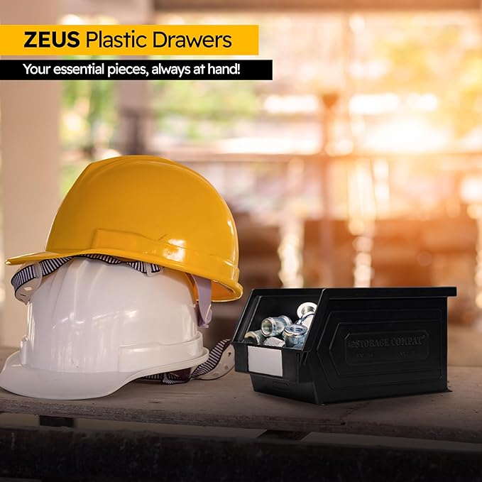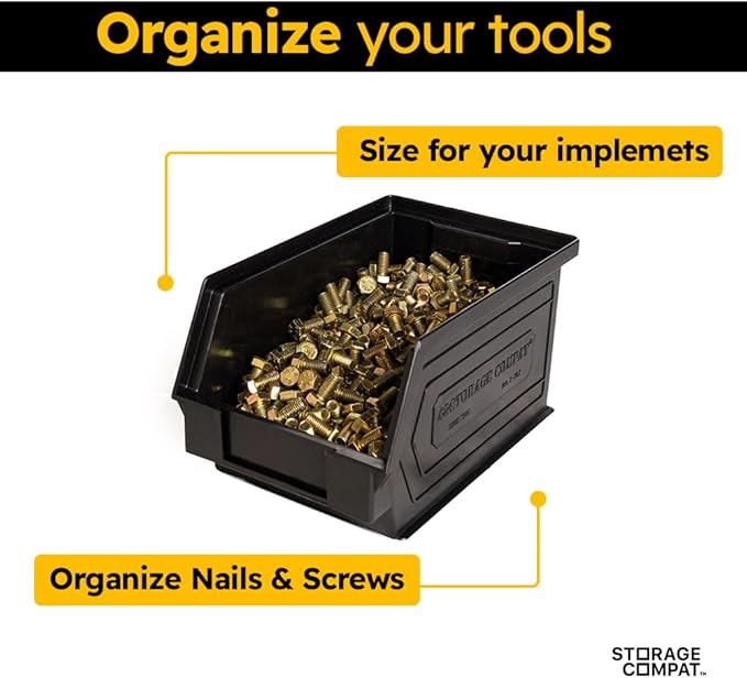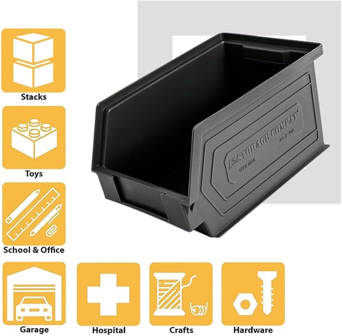 Plastic Storage Bins, Hanging, Stackable, Storage Organizer Bin for Warehouses, Workshops 9-Inch x 5-Inch x 5-Inch, Black, 12-Pack