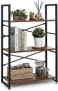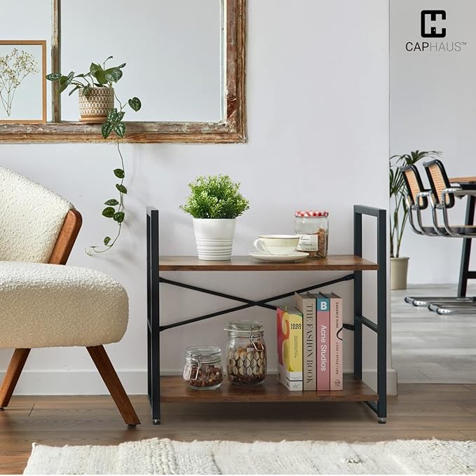 CAPHAUS 3 Tier Small Bookshelf, 24 Inch Width Free Standing Shelf, Bookcase Shelf Storage Organizer, Industrial Book Shelves for Home Office, Living Room, Rustic Oak Vintage Shelves & Metal Frame