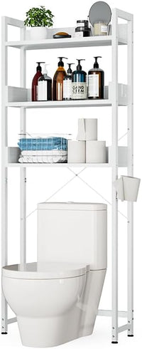 OTK Over-The-Toilet Storage, 3 Tier Bathroom Organizer Shelf, Freestanding Space Saver with Toilet Paper Holder, Multifunctional Over The Toilet Rack, White