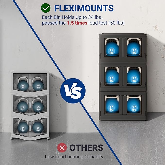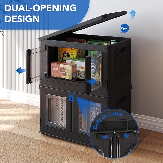 FLEXIMOUNTS 110 QT Stackable Storage Bins With Lids, Collapsible Plastic Storage Bins With Doors and Built-in Wheels For Home Dorm Closet Organizers and Storage, 3 Pack Cubes, Black