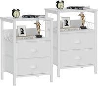 Furologee Nightstands Set of 2, End Table with 2 Fabric Drawers, Night Stand with 2 Hooks, Open Wood Shelf Bedside Table for Bedroom/Living Room/White