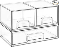 Vtopmart Stackable Storage Drawers Set of 3,Clear Plastic Organizer Bins for Makeup, Cosmetics, Beauty Supplies,Ideal for Vanity, Bathroom,Cabinet,Pantry Organization