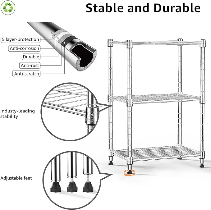450 lbs Wire Storage Shelving 3-Tier Utility Shelving Unit Steel Organizer Wire Rack for Home,Kitchen,Office,Chrome(11.8" D x 17.7" W x 26.4" H)