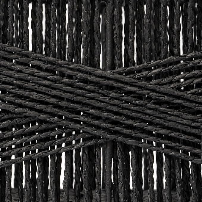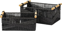 LA JOLIE MUSE Wicker Storage Baskets for Organizing, Recyclable Paper Rope Basket with Wood Handles, Decorative Hand Woven Basket Organizers for Makeup Books Shelves Living Room, Black, Set of 2