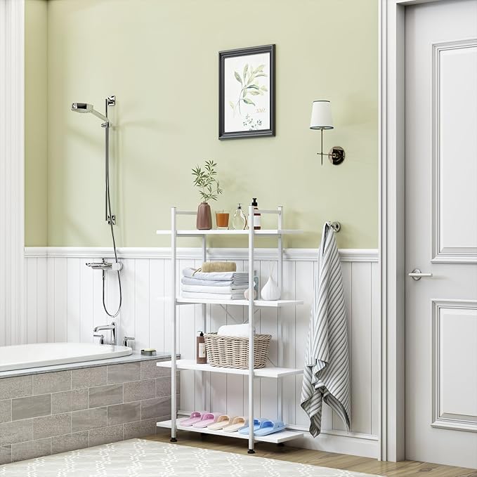 Bookshelf 4 Tiers White Wooden Storage Shelf,Modern Open Display Storage Bookcase Book Organizer,Metal Bookshelf Standing Storage Shelf Tall Shelving Units for Home Office Study