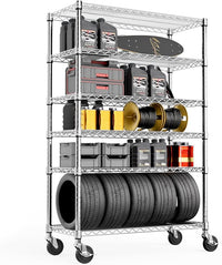 Steel Storage Shelving 6-Tier Utility Shelving Unit with Wheels, Steel Organizer Wire Rack for Home,Kitchen,Office,Garage,17.7" D x 47.2" W x 76.7" H