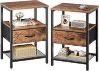 Huuger Nightstand Set of 2, Night Stand with Fabric Drawer, Mesh Shelf, Side Table with Storage, Fabric Drawer Dresser, Open Shelf, Metal Frame, Bedroom, Rustic Brown