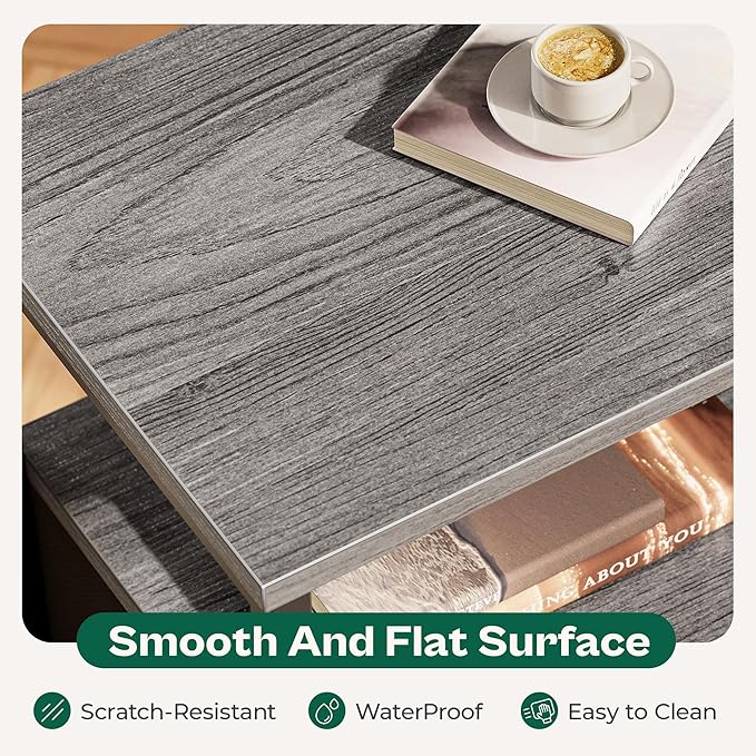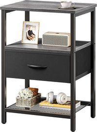 Huuger Night Stand with Fabric Drawer, Side Table with Mesh Shelf, Bedroom Nightstand, Fabric Drawer Dresser, Open Shelf, Metal Frame, Couch Side, Charcoal Gray