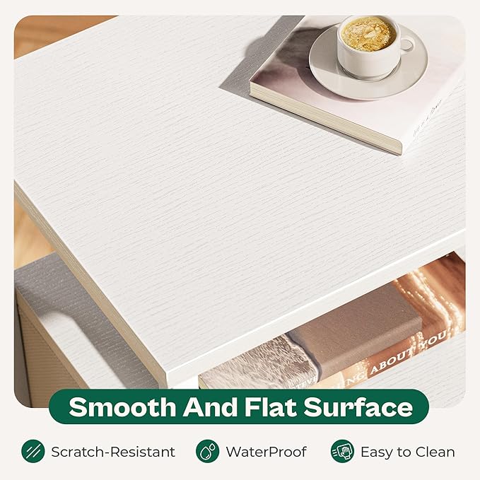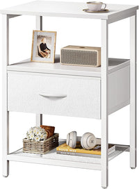 Huuger Night Stand with Fabric Drawer, Side Table with Mesh Shelf, Bedroom Nightstand, Fabric Drawer Dresser, Open Shelf, Metal Frame, Couch Side, White