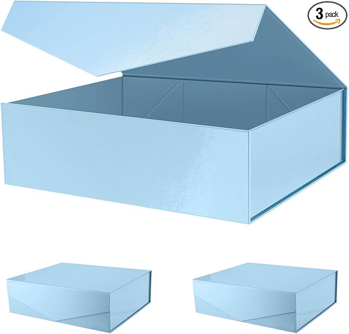 PACKHOME 17x14.5x5.5 Inches, 3 Extra Large Gift Boxes with Lids, Magnetic Closure Boxes for Clothes and Large Gifts (Glossy Light Blue)