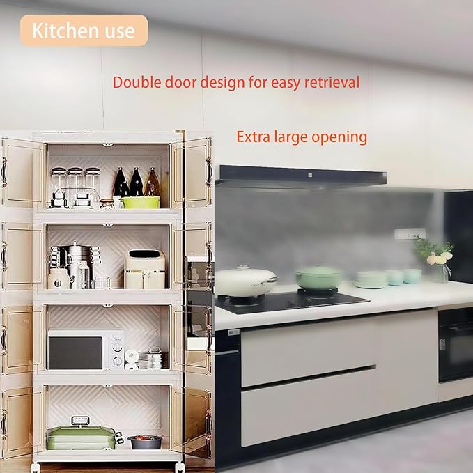 80 Gals Storage Bins with Lids - Folding Storage Box with Doors and Wheels, Collapsible Plastic Bins for Closets, Stackable Storage Organizer, (Extra Large-5Tiers)