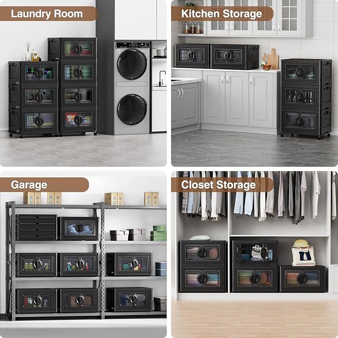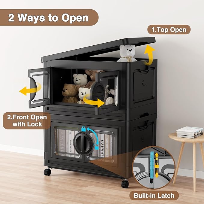 30 Gal Lockable Storage Bins with Lids, Stackable Collapsible Storage Bin with Wheels, Closet Organizers and Storage Drawer, Plastic Cabinet for Toy Clothes Organizer, V9 1 Pack Black