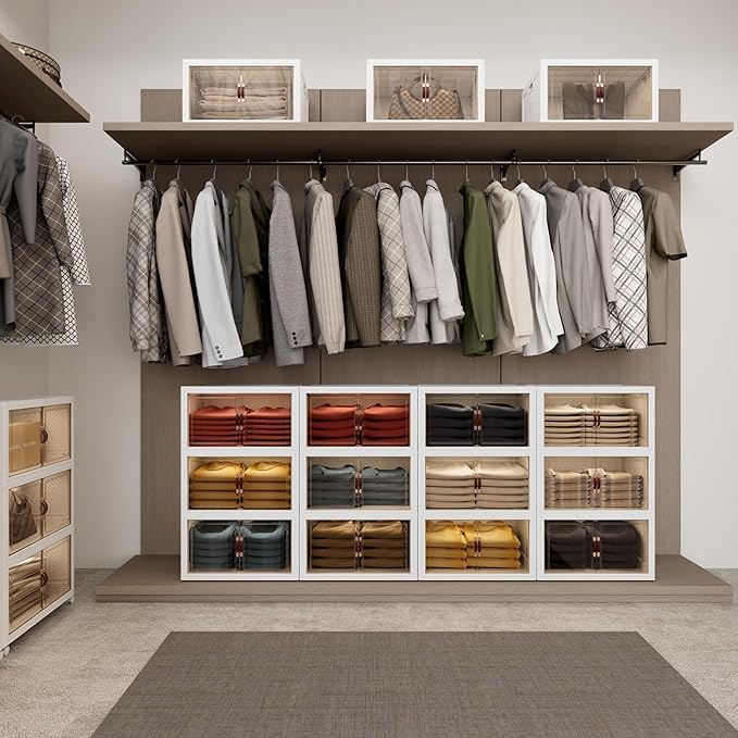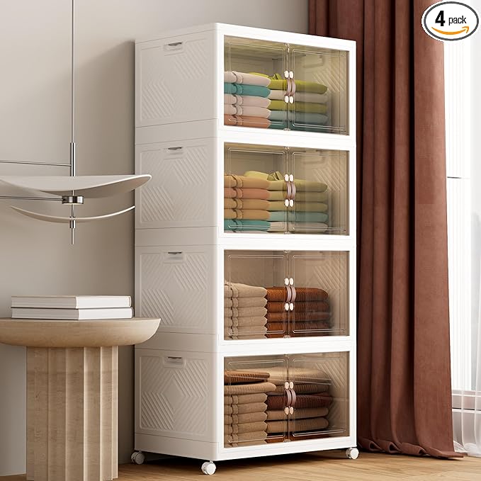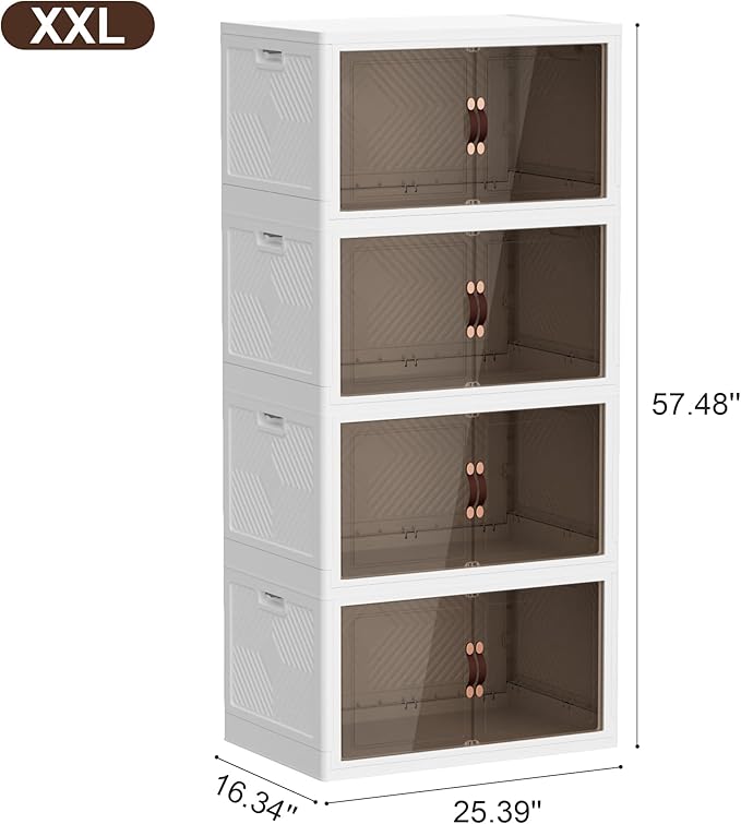JOYMOOP Folding Storage Bins Organizer, 336 Quart Collapsible Storage Boxes with Wheels and Door, Stackble Plastic Storage Container for Clothing, Books and Sundries (XXL, 21 Gal Per, 4 Tiers)