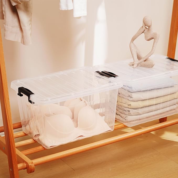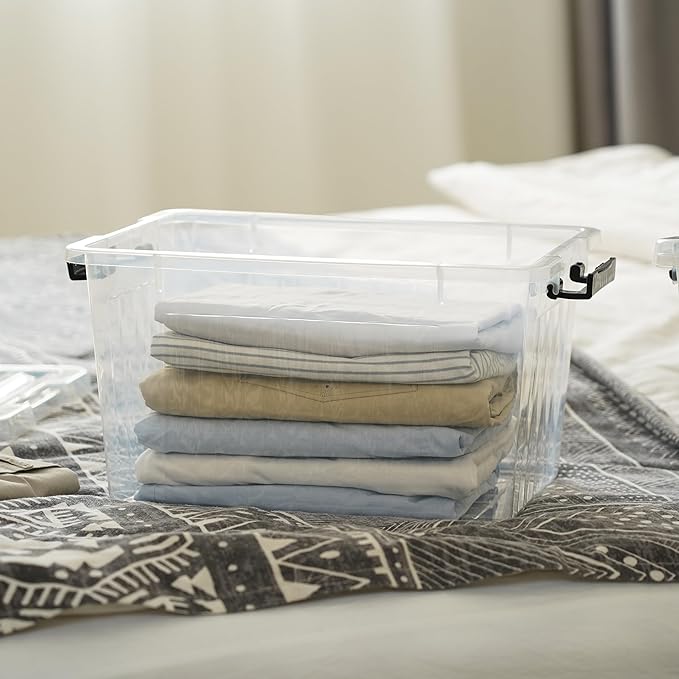 Citylife 22 QT Clear Plastic Storage Bins with Lids Stackable and Nestable Storage Boxes with Lids Large Plastic Storage Containers for Garage, Closet, Kitchen, 4 Packs