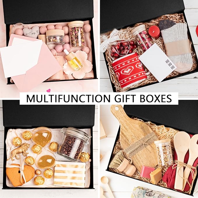 RayofSun Black Gift Box,13.8" x 9" x 4.3" Large Groomsmen Proposal Box with Magnetic Closure Lid and Ribbon for Anniversary Wedding Birthday Graduation Festivals (3 Pack)
