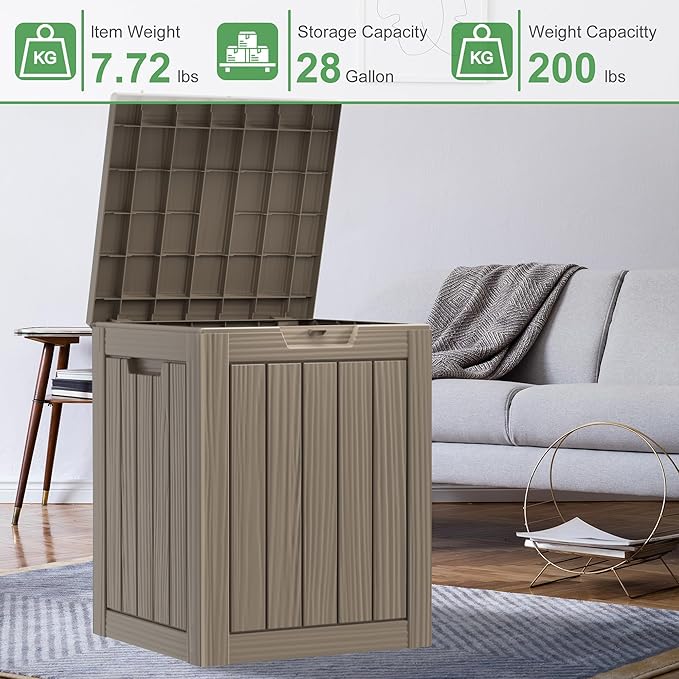 ROJIK Outdoor Storage Housing Deck Box - Waterproof Patio Furniture, Garden Tools, Cushions, Pool Accessories Storage Bench with Lockable Lid and Side Handles (Grey, 28 Gal)