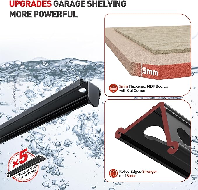 REIBII 2020LBS Storage Shelves 5 Tier Garage Shelving Heavy Duty, Adjustable Metal Shelving Unit, Garage Shelves for Basement, Warehouse, Pantry, 72" H x 35.55" W x 16" D, Black, 3 Pack