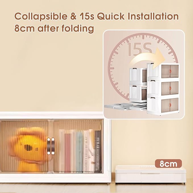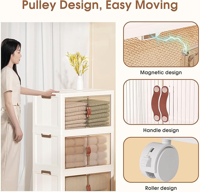 3 Tier Storage Bins with Lids, 104QT Collapsible Plastic Storage Bins, Folding Storage Boxes with Doors, Stackable Storage Organizer for Home, Office and Dorm