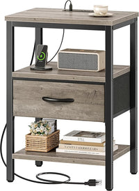 SUPERJARE Nightstand with Charging Station, Bed Side Table with Adjustable Fabric Drawer, Night Stand for Bedroom, 3-Tier Storage End Table, for Living Room, Oak