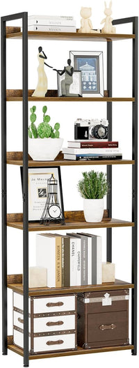 NUMENN Bookshelf, 6 Tier Bookshelves, Home Office Bookcase Shelf Storage Organizer, Free Standing Storage Shelving Unit for Bedroom, Living Room and Home Office, Vintage