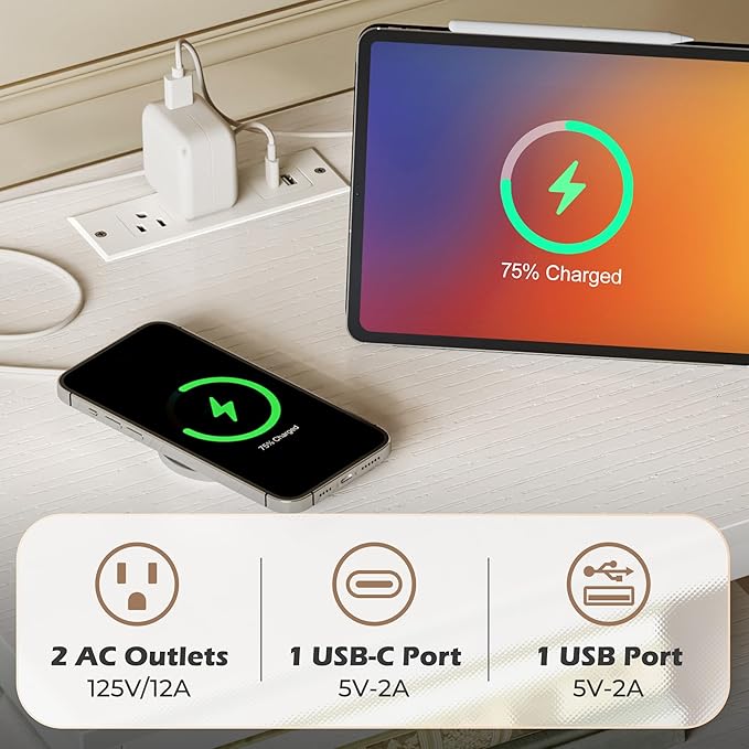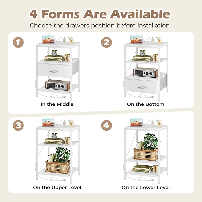 SUPERJARE Nightstand with Charging Station, White Night Stand with Adjustable Drawers, 17.7 Inches Wider Side Table for Bedroom, 3-Tier Storage End Table with Open Shelf, PU Leather Surface