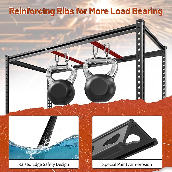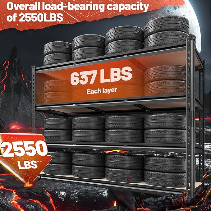 REIBII 48" W Garage Shelving Heavy Duty 2550 LBS Storage Shelves 4 Tier Heavy Duty Shelving, Adjustable Metal Shelves, Industrial Shelf for Garage, Warehouse, Pantry, 48" W x 60" H x 24" D