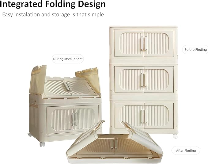 Holaki 117 QT Storage Bins with Lid, 3 Tier Collapsible Closet Organizers, Stackable Plastic Storage Bins Cabinet with Wheels and Magnetic Door, Opaque