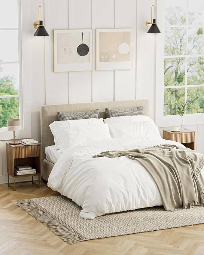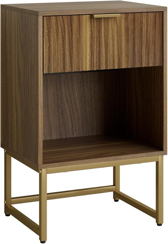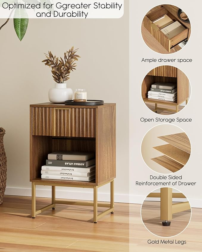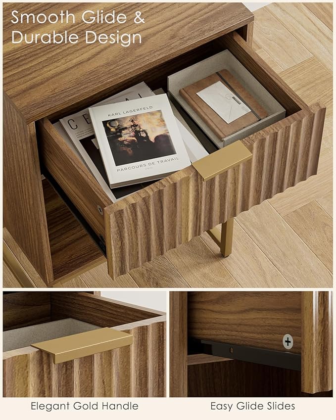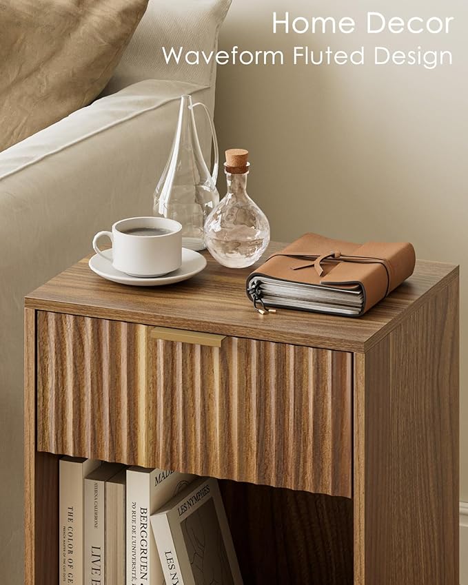 Masupu Fluted Nightstand,Modern Night Stand Wood Bedside Table with Storage Drawer Side End Table for Bedroom,Living Room,Office,Walnut Brown