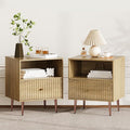 Modern Nightstand with Charging Station and LED Lights, White Bedside Table with Drawer, Fluted Side Table for Living Room, Bedroom
