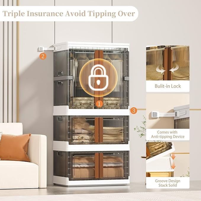 HAIXIN Closet Organizers and Storage, Collapsible Clothing Storage with Closet Rod and Clothes Hangers, Stackable Shelves, 39.6 Gal Wardrobe Organizer for Bedroom, 1 Pack