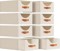 Large Closet Organizers and Storage - Stackable Storage Bins with Drawer, Fabric Containers for Organizing, Collapsible Organizer Bins for Bedroom, 8 Pack, Beige