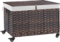Rolling Storage Basket with Lid, 47.6 Gallon (180L) Storage Bin with Wheels, Woven Rattan Blanket Storage Basket with Handles, Foldable, Metal Frame, Removable Liner for Bedroom, Laundry Room, Brown