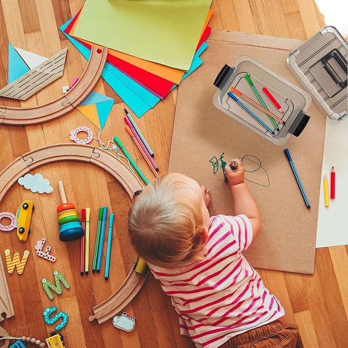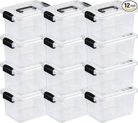 Nazhura Plastic Storage Bin, Stackable and Nestable Storage Boxes with White Lids and Secure Latching Buckles, Large Storage Container (CLEAR, 6QT 12PACK)