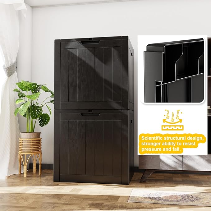 30 Gallon Deck Box,Resin Outdoor Storage Box with Lockable for Patio Furniture, Garden Tools Waterproof Outside Storage Box (Black)