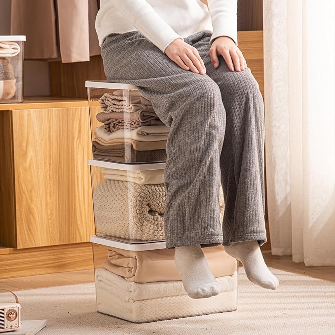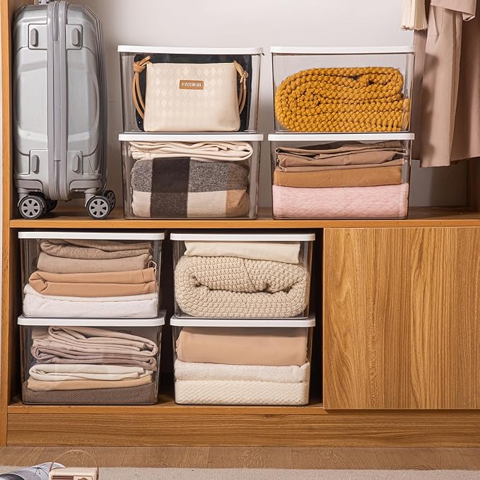4-Piece Set,Plastic Storage Bin with Lid,Large Storage Containers,Stackable Lidded Storage Boxes for Cabinets, Clothes, Toys, Books (clear 4XL(with wihte lid))