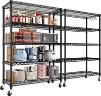 PrimeZone 2 Pack 5 Tier Wire Shelving Rack Storage Shelves with Wheels,Adjustable Rolling Heavy Duty Metal Shelving Unit,Utility Shelf for Kitchen Garage Closet Pantry Laundry 36" W x 14" D x 74" H