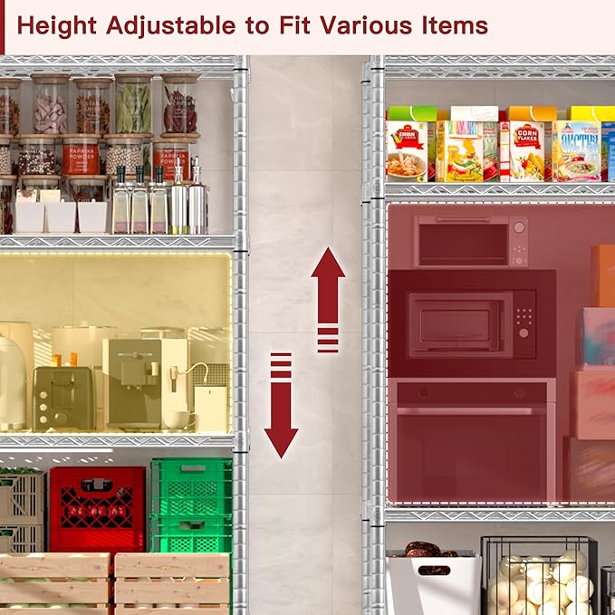 PrimeZone 48" W Wire Shelving Heavy Duty with Wheels,5 Tier Adjustable Garage Storage Shelves Unit,Rolling Metal Organizer Shelf Utility Rack Warehouse,Pantry,Chrome 48" Wx24 Dx81 H