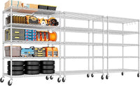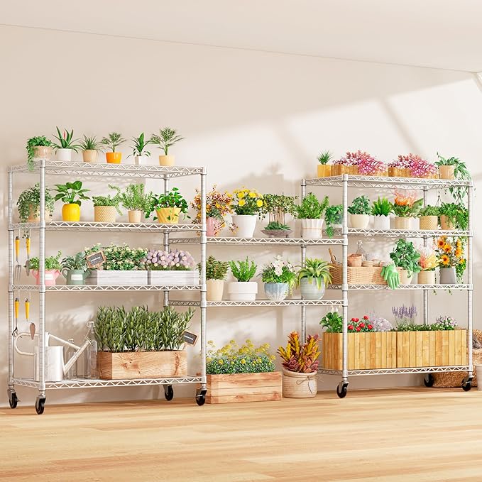 PrimeZone 3 Pack 48" W Wire Shelving Heavy Duty with Wheels,5 Tier Adjustable Garage Storage Shelves Unit,Rolling Metal Organizer Shelf Utility Rack Warehouse,Pantry,Chrome 48" Wx24 Dx81 H Sale