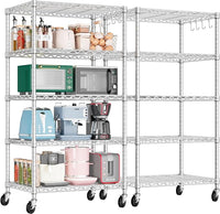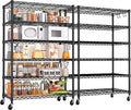 PrimeZone 2 Pack Steel Storage Wire Shelving 5 Tier Metal Shelves with Wheels,Adjustable Kitchen Utility Shelving Unit,Pantry Rack Rolling Metal Shelf Laundry,Chrome 24" Wx18 Dx75 H
