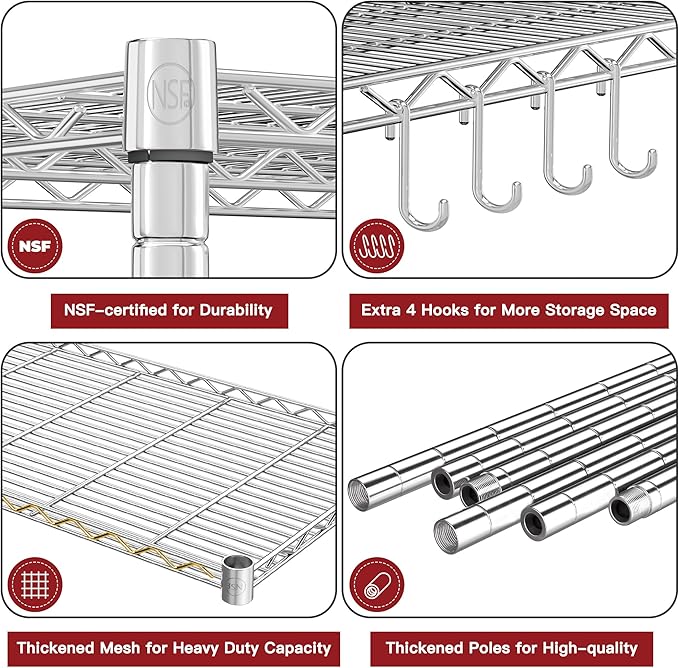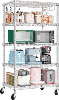 PrimeZone 75" H Wire Shelving 5 Tier Slim Steel Storage Metal Shelves with Wheels,Adjustable Kitchen Utility Shelving Unit,Pantry Rack Rolling Metal Shelf Chrome 24" Wx18 Dx75 H Sale