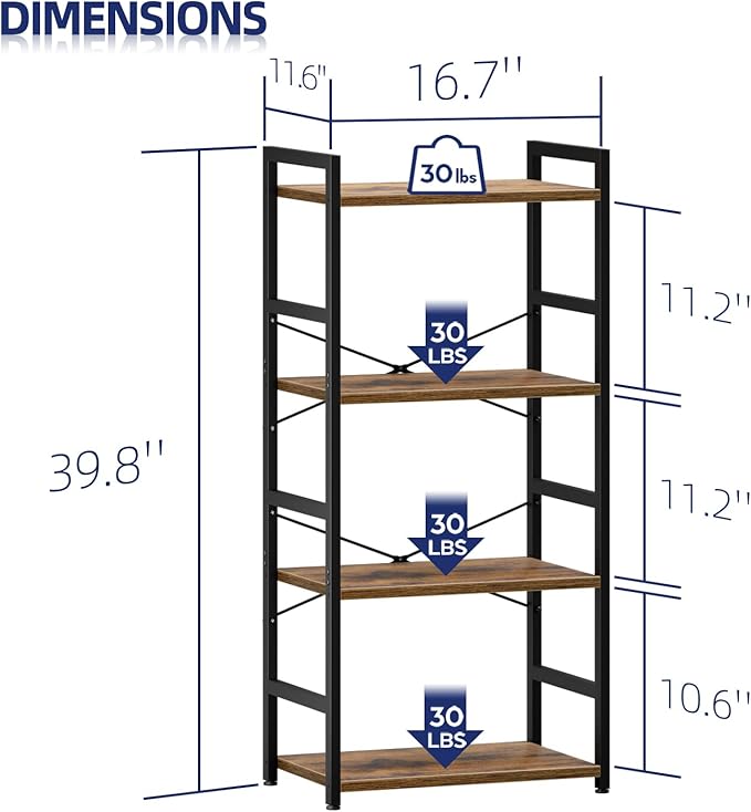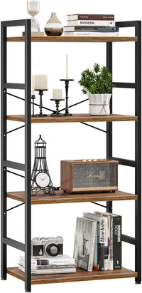 NUMENN 4 Tier Small Bookshelf, Industrial Bookcase Shelf Storage Organizer, Modern Book Shelf for Bedroom, Living Room and Home Office, Vintage