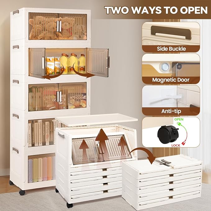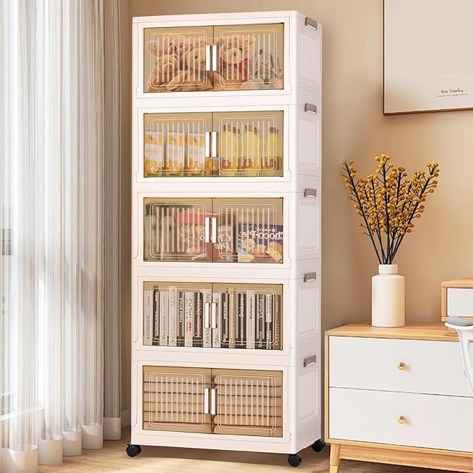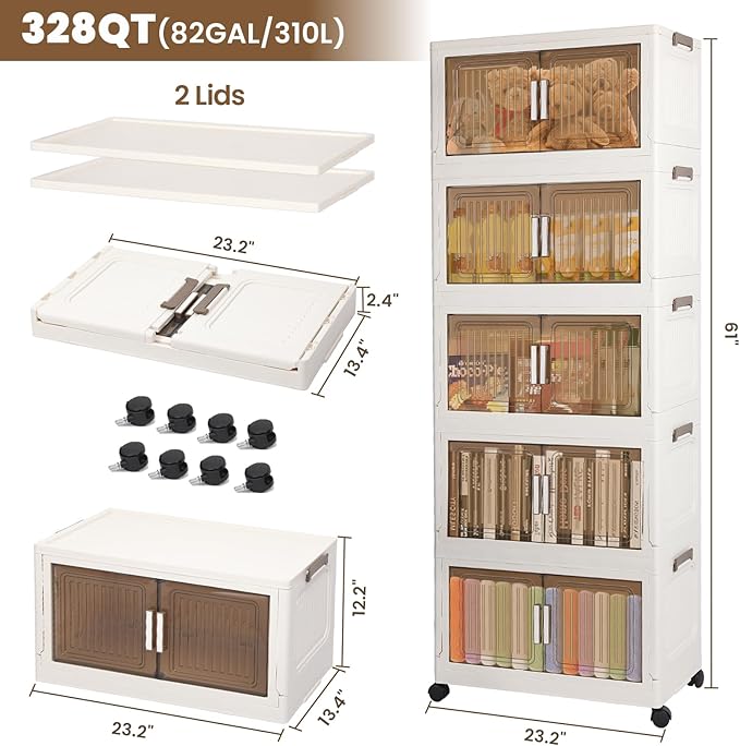 5 Packs 330 QT Stackable storage bins with Lids, 82.5 Gal Plastic Storage Bins With Lids with wheels, Collapsible Storage Box with Lid,Closet Organizers and Storage for Home, Dorm, Office,Outdoor
