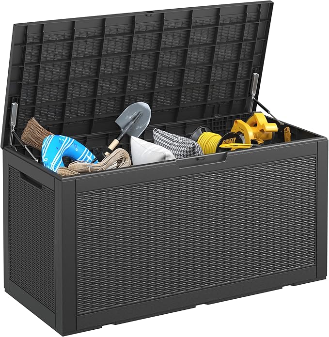 KAMABOKO 101 Gallon Waterproof Large Resin Deck Box, Lockable Large Outdoor Storage Boxes Indoor Outdoor Storage Container for Patio Cushions, Gardening Tools, Pool Supplies, Black