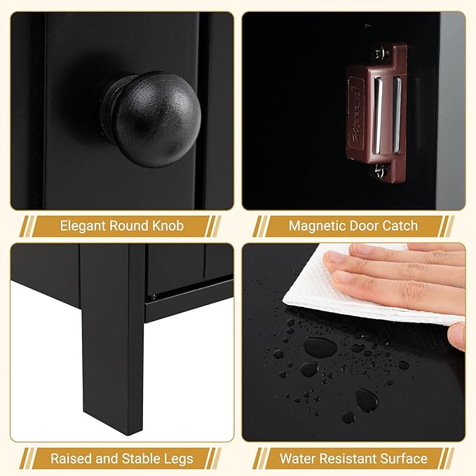 Tangkula Bathroom Storage Cabinet, Freestanding Wooden Single Door Side Floor Organizer with Adjustable Shelf, Small Bathroom Cabinet for Small Spaces, Living Room (Black) Sale