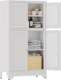 White Bathroom Floor Cabinet, Metal Storage Cabinet with 2 Adjustable Shelves & 4 Doors,Freestanding Sideboard for Dining Room,Living Room, Home Office