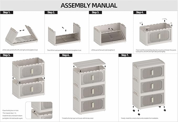 Holaki 256 QT Storage Bins with Lid, 4 Tiers Collapsible Closet Organizers, Stackable Plastic Storage Bins Cabinet with Wheels and Magnetic Door(Black Larger)